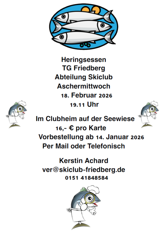 | 18.02.2026 | 19.11 Uhr | Heringsessen | Skiclub | Anmeldung |