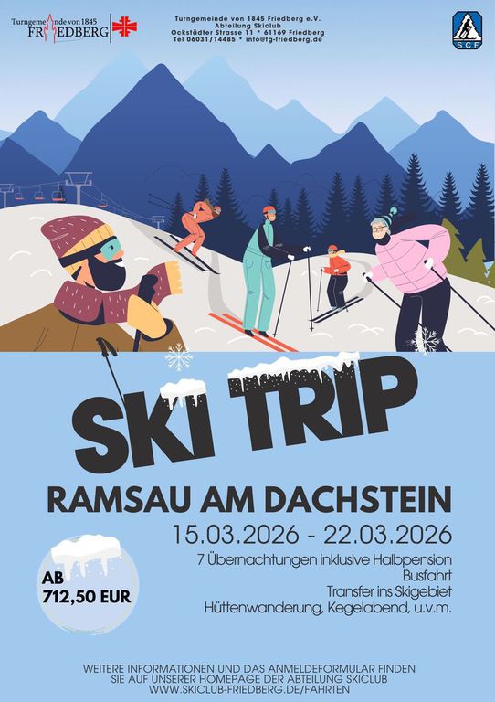 | 15.03.2026 - 22.03.2026 | Skifahrt Ramsau am Dachstein | Skiclub | Anmeldung | |