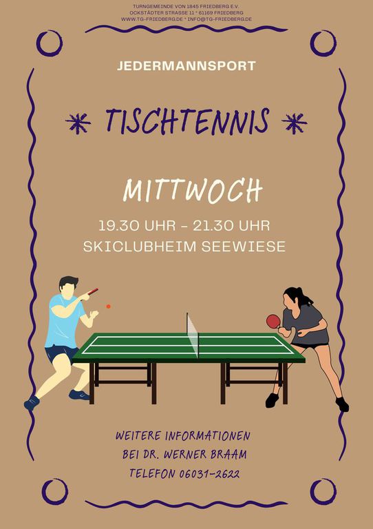 | Tischtennis | Mittwoch, 19.30-21.30 Uhr | Skiclubheim Seewiese | Dr. Werner Braam |