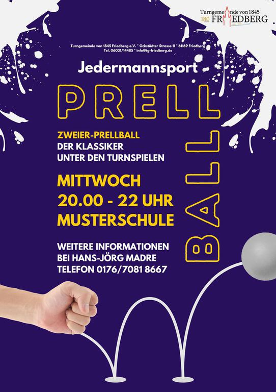 | Prellball | Mittwoch, 20.00-22.00 Uhr | Musterschule | Hans-Jörg Madre |