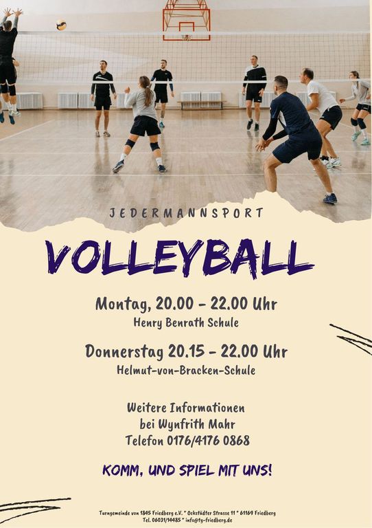 | Volleyball | Donnerstag, 20.15-22.00 Uhr | Helmut-von-Bracken-Schule | Joachim Kautz |