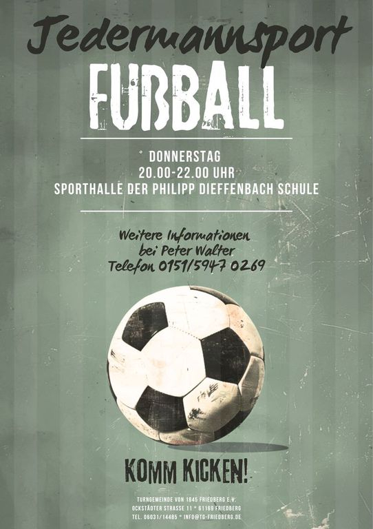 | Fußball | Donnerstag, 20.00-22.00 Uhr | Philipp-Dieffenbach-Schule | Peter Walter |